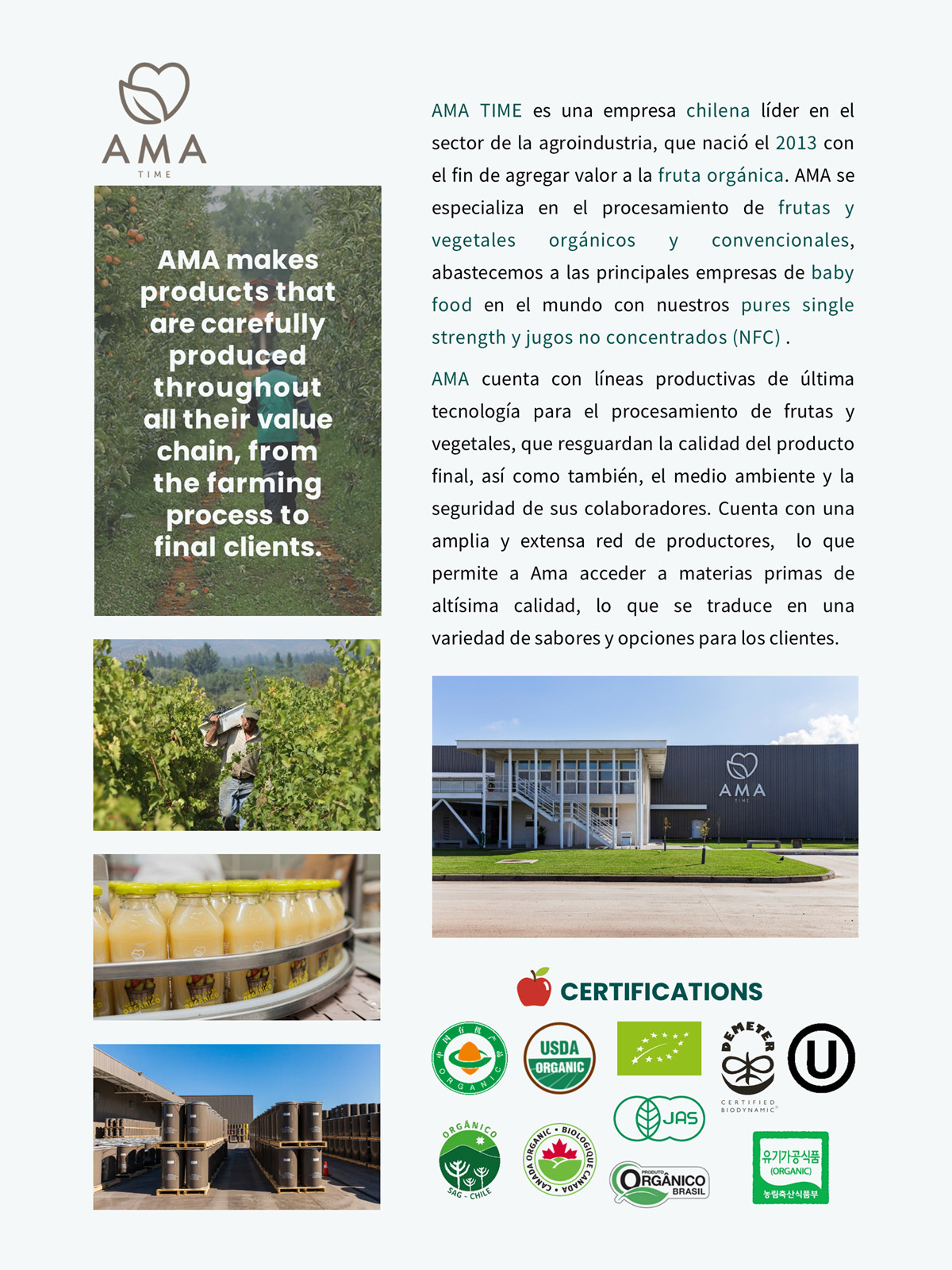 Productos Principales: Puré Orgánico, Jugo NFC, Productos Retail