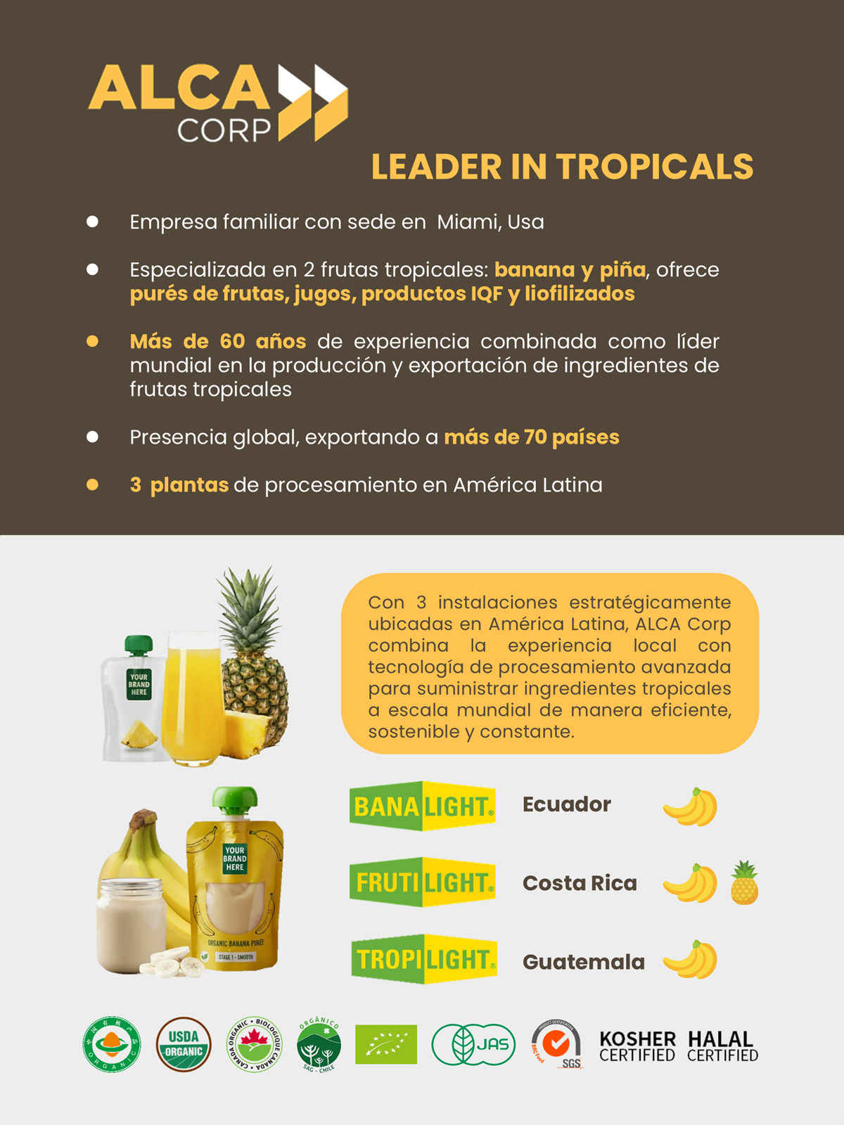 Productos Principales: Puré de Banana Orgánico/Convencional, Jugo de Piña NFC