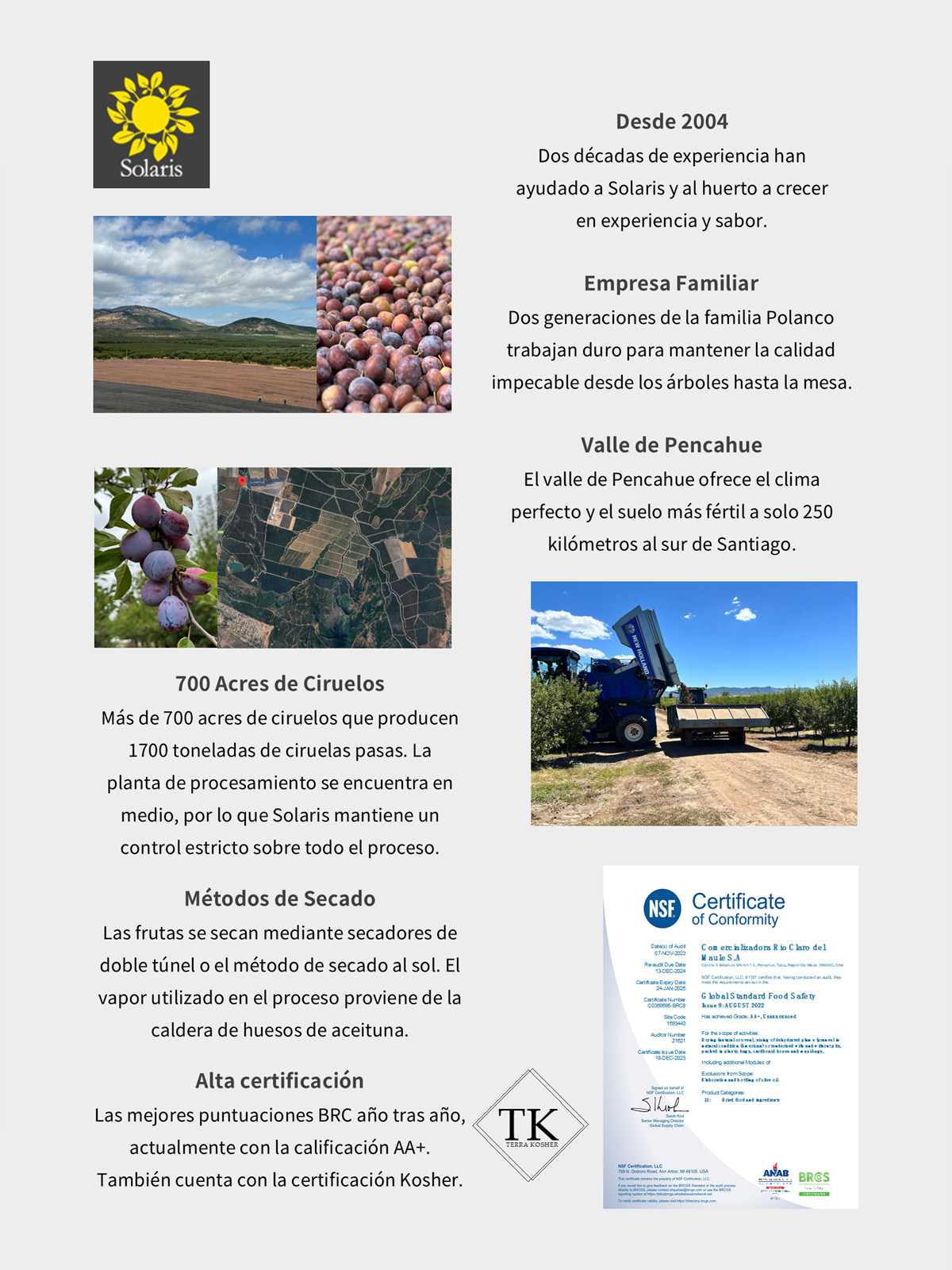 Productos Principales: Ciruelas Deshidratadas, Cerezas Deshidratadas